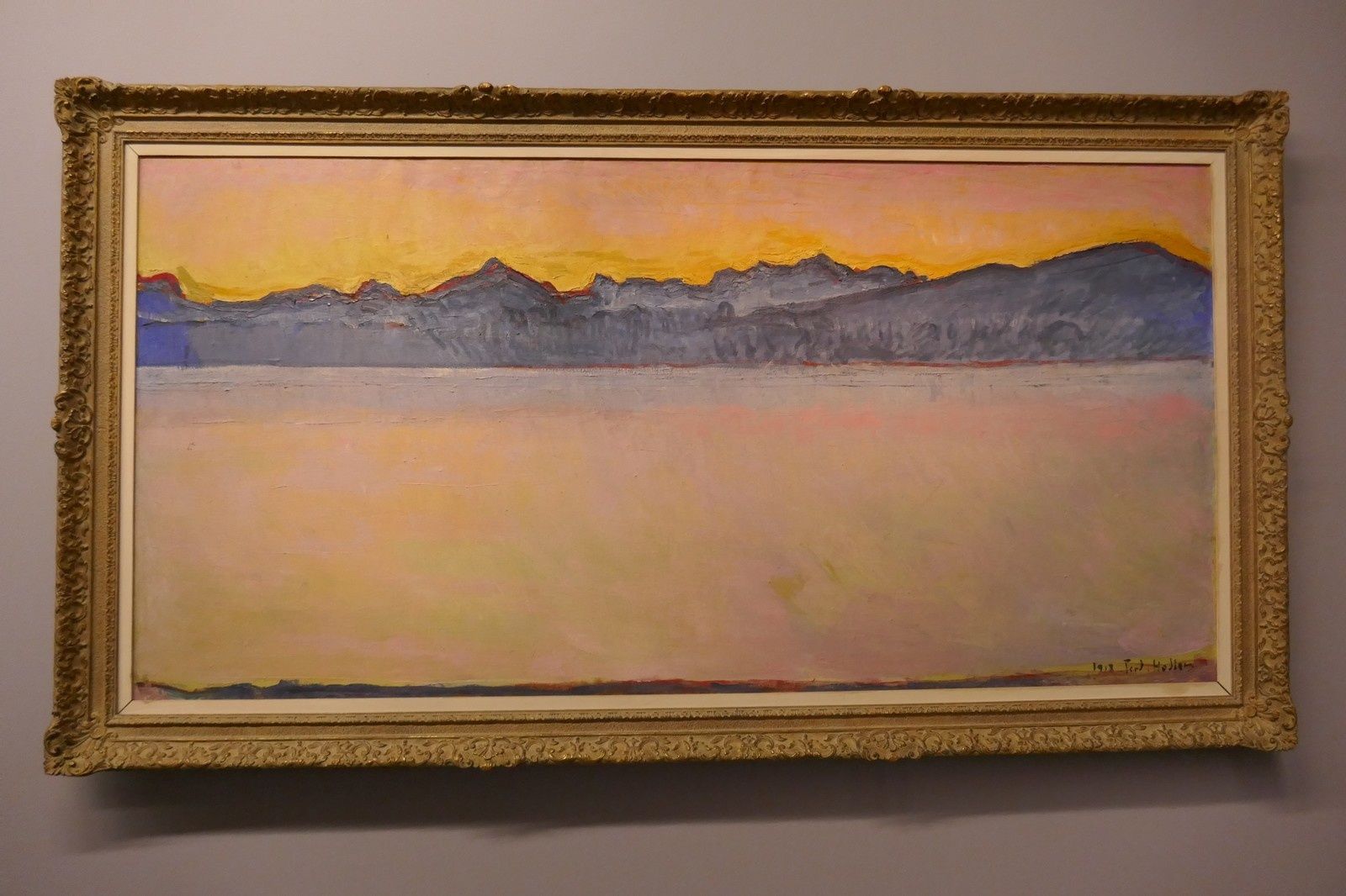 Ferdinand Hodler, Le Léman et le Mont Blanc à l'aube, 1918. Huile sur toile. 74,5 x 150 cm.. Collection privée © photo Le Curieux des arts Gilles Kraemer, 2019.